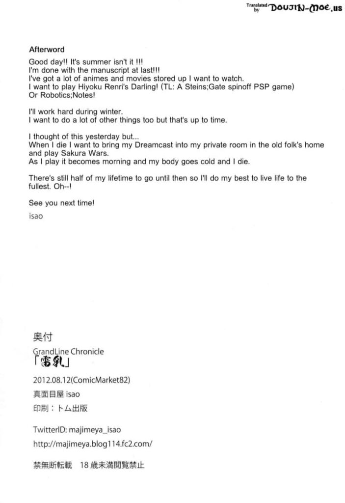 โดจิน จับตัวนามิแมวขโมย (C82) [Majimeya (isao)] GrandLine Chronicle 2 Rainyuu GrandLine Chronicle 2 – Thunder-Tits (One Piece) เกมไล่จับหลังเวทีคอสเพลย์ของจอมโจรสายแซวจบลงด้วยบทลงโทษแบบยิ้มๆ ที่ทั้งสองฝ่ายโอเค—คัดเล่มโจรสลัดสุดซ่าใน Doujin th และหน้า โดจินแปลไทย
