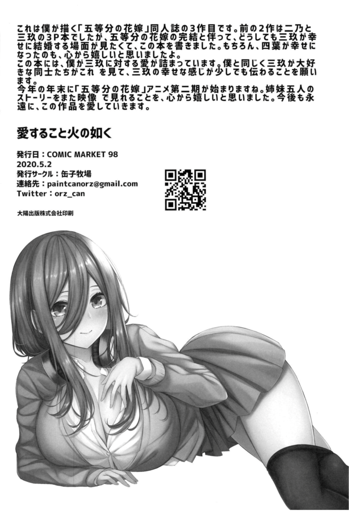 โดจิน คืนพิเศษของมิคุ [Kannko Bokujyo (Kannko)] Aisuru Koto Hi no Gotoku (Gotoubun no Hanayome) อ่านโดจินชิฟรี (Doujin) ได้ที่นี่ อ่านการ์ตูนภาพน่ารัก นิยาย มังงะ18+ โดจินแปลไทย doujin thai อ่านโดจิน มาใหม่