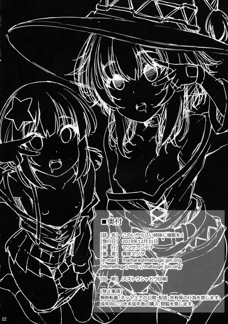 โดจิน ครอบครัวที่น่ารักของเมกุมิน (C97) [Matsuge Antenna (Maihara Matsuge)] Kono Iyarashii Shimai ni Saimin o! (Kono Subarashii Sekai ni Syukufuku o!) อ่านโดจินชิฟรี (Doujin) ได้ที่นี่ อ่านการ์ตูนภาพน่ารัก นิยาย มังงะ18+ โดจินแปลไทย doujin thai อ่านโดจิน มาใหม่