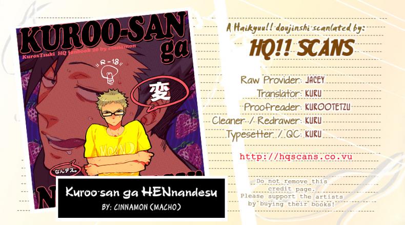 โดจิน คุโระซัง เปลี๋ยนไป๋ cinnamon (Macho) – Kuroo-san ga Hen Nandesu! (Haikyuu!!) อ่านโดจินชิฟรี (Doujin) ได้ที่นี่ อ่านการ์ตูนภาพน่ารัก animekimi นิยาย มังงะ18+ โดจินแปลไทย doujin thai อ่านโดจิน มาใหม่