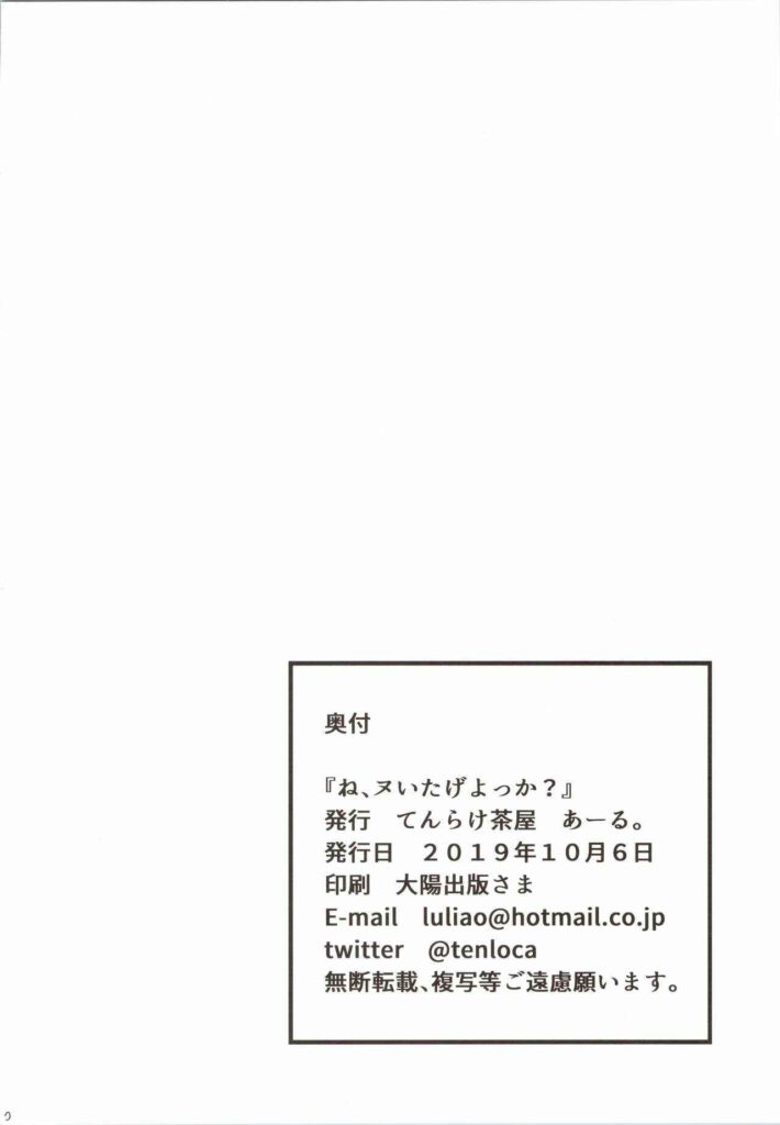(COMIC1?16) [Tenrake Chaya (Ahru.)] Ne, Nuitageyokka? (Azur Lane)